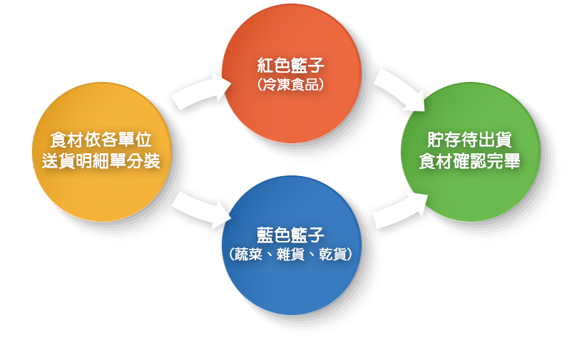- 食材送至廚房無紙箱作業,降低污染源及確保品質。